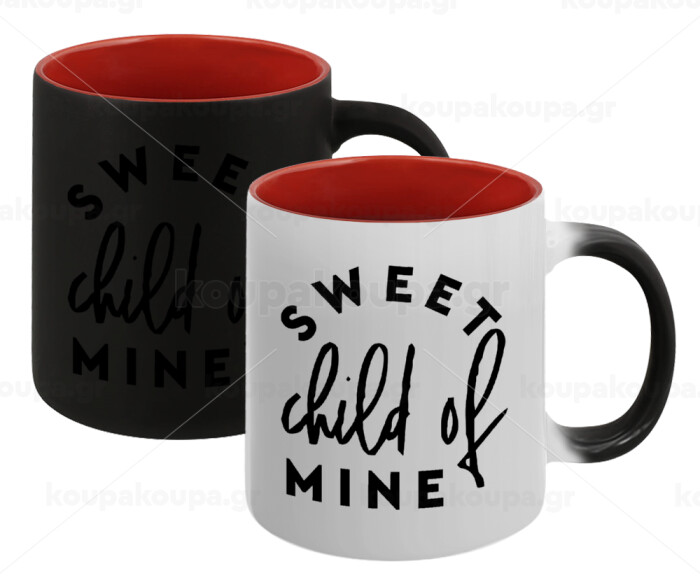 Sweet child of mine!, Κούπα Μαγική εσωτερικό κόκκινο, κεραμική, 330ml που αλλάζει χρώμα με το ζεστό ρόφημα