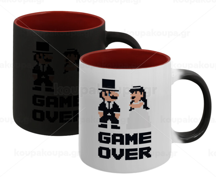 8bit Game Over Couple Wedding, Κούπα Μαγική εσωτερικό κόκκινο, κεραμική, 330ml που αλλάζει χρώμα με το ζεστό ρόφημα