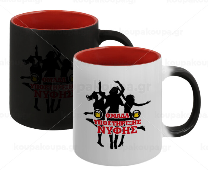 Bachelor Ομάδα υποστήριξης Νύφης, Κούπα Μαγική εσωτερικό κόκκινο, κεραμική, 330ml που αλλάζει χρώμα με το ζεστό ρόφημα