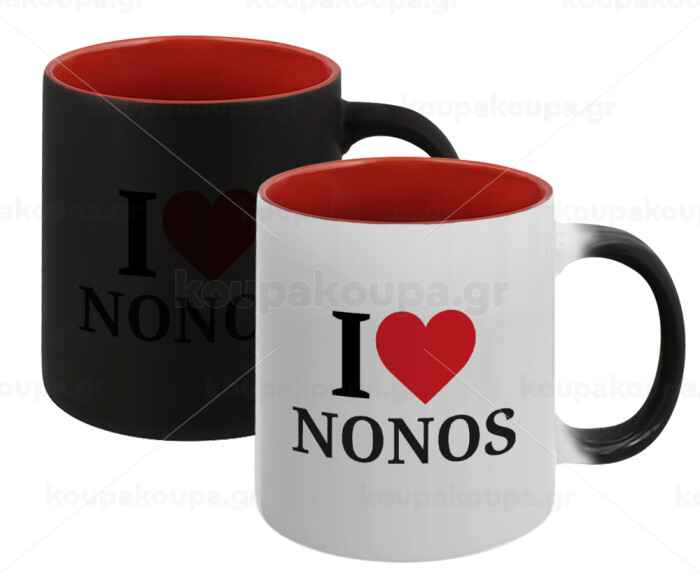 I Love ΝΟΝΟΣ, Κούπα Μαγική εσωτερικό κόκκινο, κεραμική, 330ml που αλλάζει χρώμα με το ζεστό ρόφημα