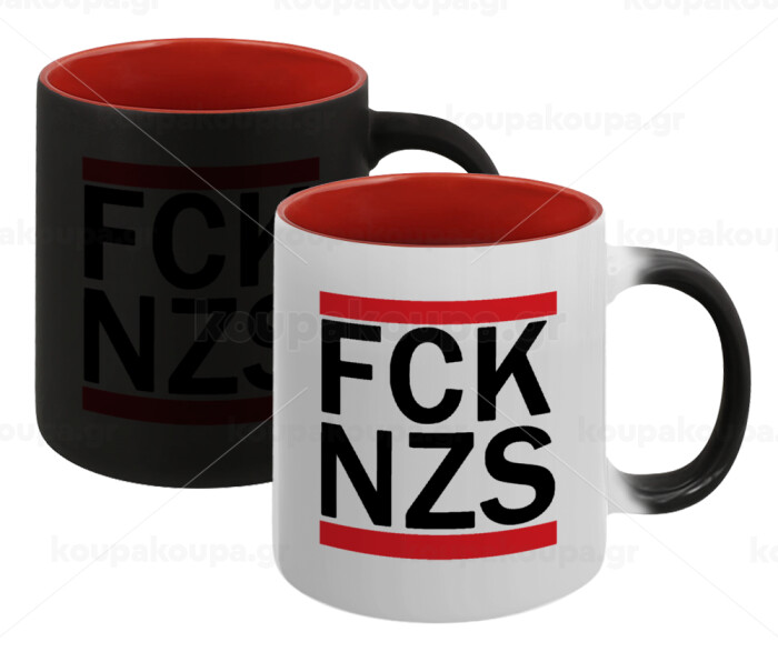 FCK NZS, Κούπα Μαγική εσωτερικό κόκκινο, κεραμική, 330ml που αλλάζει χρώμα με το ζεστό ρόφημα