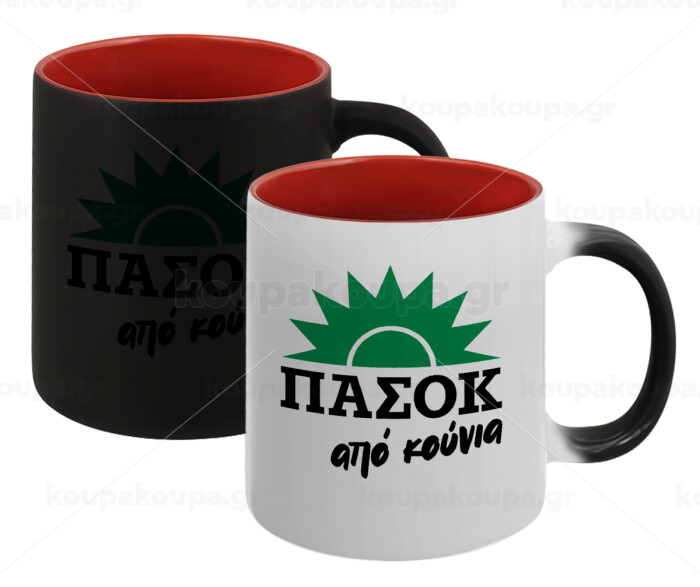 ΠΑΣΟΚ από κούνια, Κούπα Μαγική εσωτερικό κόκκινο, κεραμική, 330ml που αλλάζει χρώμα με το ζεστό ρόφημα