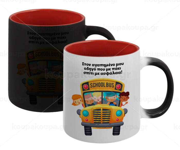 Στον αγαπημένο μου οδηγό που με πάει σπίτι με ασφάλεια!, Κούπα Μαγική εσωτερικό κόκκινο, κεραμική, 330ml που αλλάζει χρώμα με το ζεστό ρόφημα