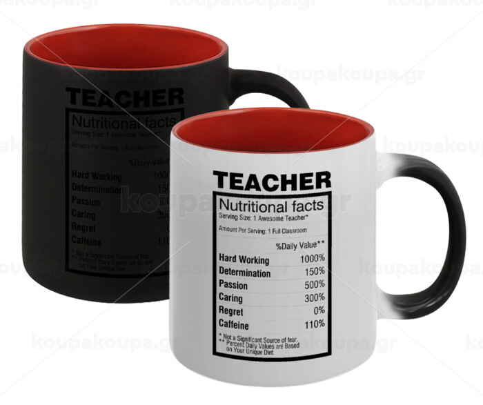 teacher nutritional facts, Κούπα Μαγική εσωτερικό κόκκινο, κεραμική, 330ml που αλλάζει χρώμα με το ζεστό ρόφημα
