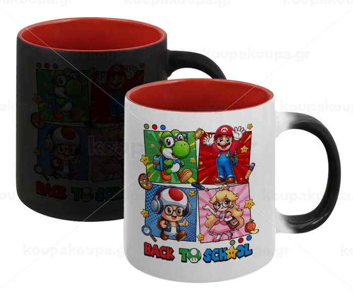 Back to the School Mario & Friends, Κούπα Μαγική εσωτερικό κόκκινο, κεραμική, 330ml που αλλάζει χρώμα με το ζεστό ρόφημα