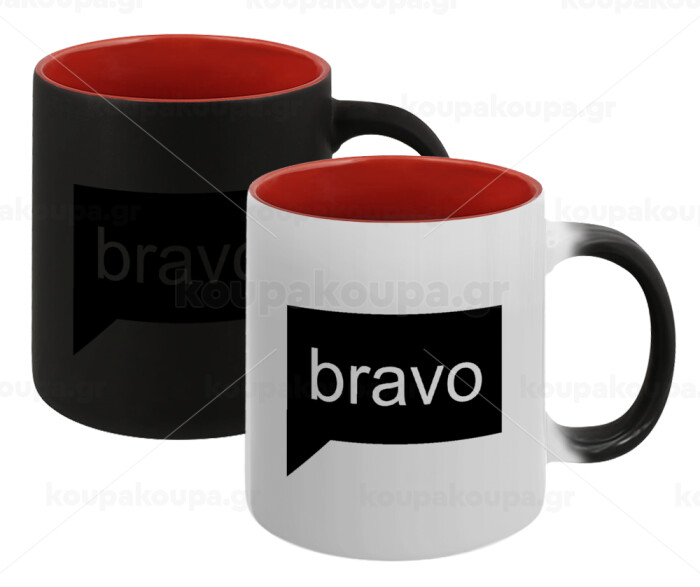 Bravo, Κούπα Μαγική εσωτερικό κόκκινο, κεραμική, 330ml που αλλάζει χρώμα με το ζεστό ρόφημα
