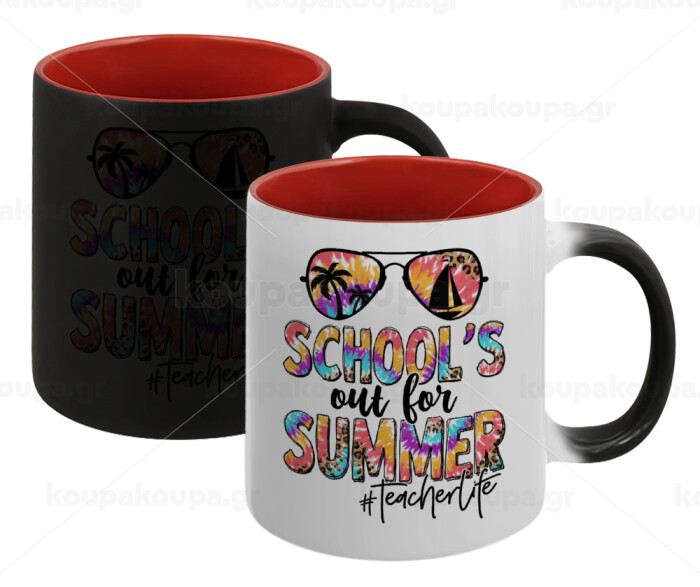 School's Out For Summer Teacher Life, Κούπα Μαγική εσωτερικό κόκκινο, κεραμική, 330ml που αλλάζει χρώμα με το ζεστό ρόφημα