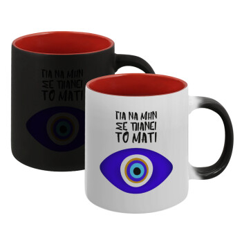Για να μην σε πιάνει το μάτι, Κούπα Μαγική εσωτερικό κόκκινο, κεραμική, 330ml που αλλάζει χρώμα με το ζεστό ρόφημα