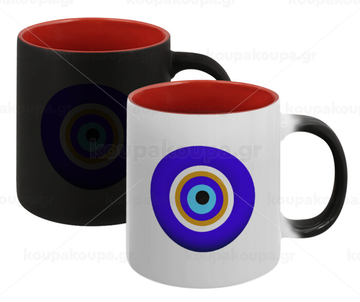 Το μάτι, Κούπα Μαγική εσωτερικό κόκκινο, κεραμική, 330ml που αλλάζει χρώμα με το ζεστό ρόφημα
