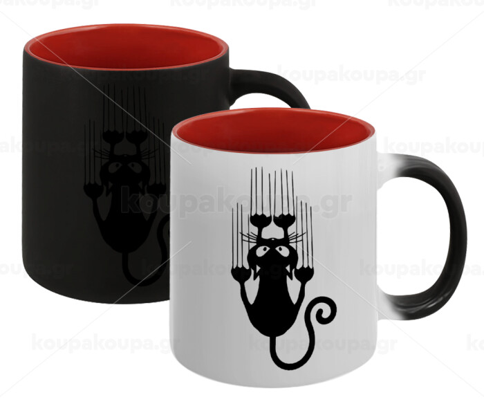 Cat scratching, Κούπα Μαγική εσωτερικό κόκκινο, κεραμική, 330ml που αλλάζει χρώμα με το ζεστό ρόφημα