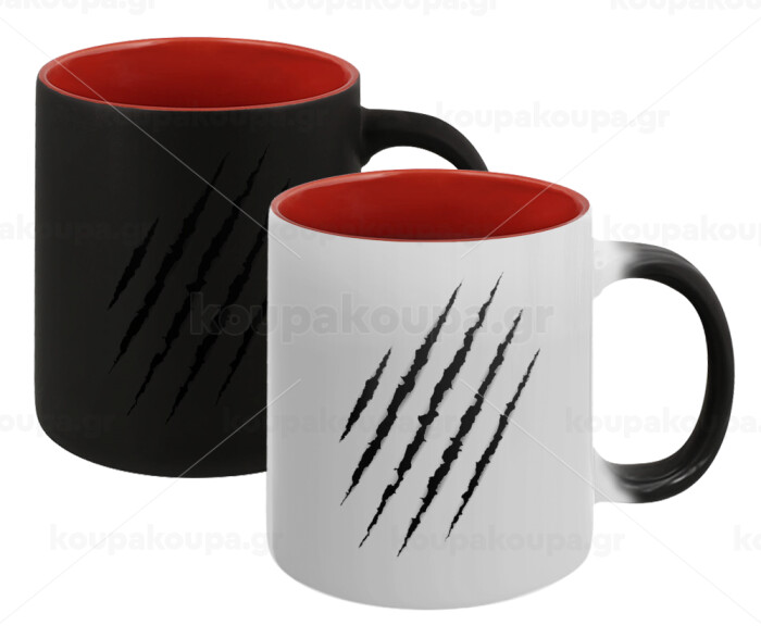 Claw scratch, Κούπα Μαγική εσωτερικό κόκκινο, κεραμική, 330ml που αλλάζει χρώμα με το ζεστό ρόφημα
