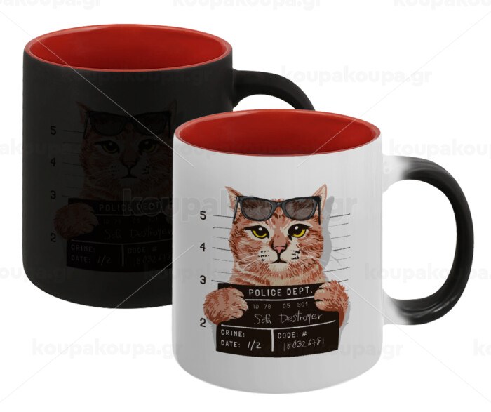 Cool cat, Κούπα Μαγική εσωτερικό κόκκινο, κεραμική, 330ml που αλλάζει χρώμα με το ζεστό ρόφημα