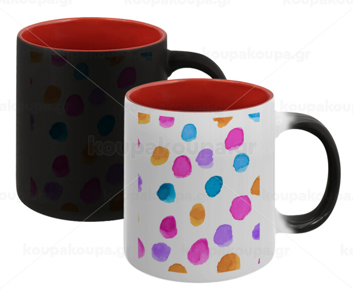 Watercolor dots, Κούπα Μαγική εσωτερικό κόκκινο, κεραμική, 330ml που αλλάζει χρώμα με το ζεστό ρόφημα