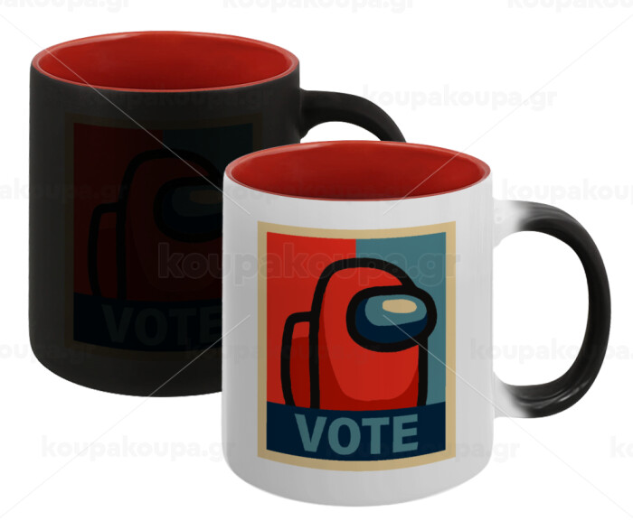 Among US VOTE, Κούπα Μαγική εσωτερικό κόκκινο, κεραμική, 330ml που αλλάζει χρώμα με το ζεστό ρόφημα