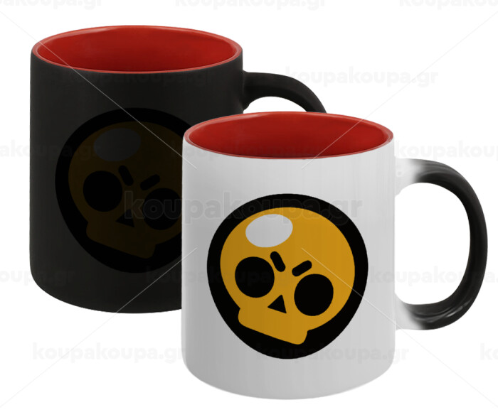 Brawl Stars Skull, Κούπα Μαγική εσωτερικό κόκκινο, κεραμική, 330ml που αλλάζει χρώμα με το ζεστό ρόφημα