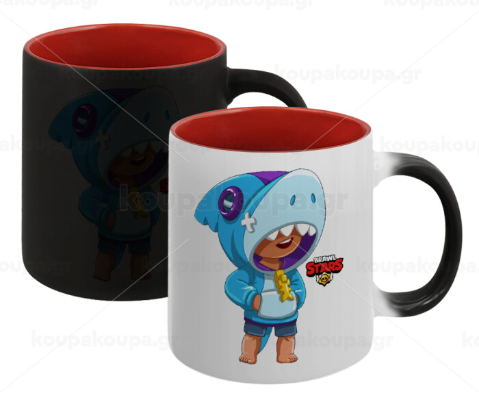 Brawl Stars Leon Shark, Κούπα Μαγική εσωτερικό κόκκινο, κεραμική, 330ml που αλλάζει χρώμα με το ζεστό ρόφημα