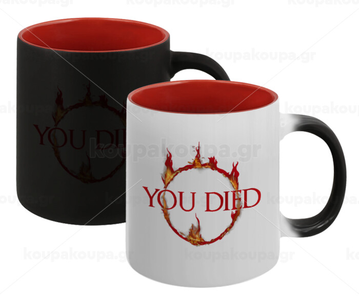 You Died | Dark Souls, Κούπα Μαγική εσωτερικό κόκκινο, κεραμική, 330ml που αλλάζει χρώμα με το ζεστό ρόφημα