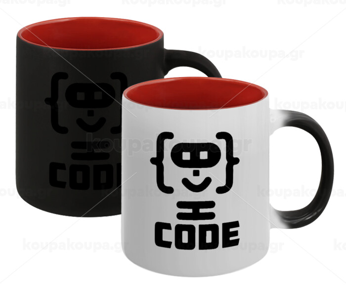 Code Heroes symbol, Κούπα Μαγική εσωτερικό κόκκινο, κεραμική, 330ml που αλλάζει χρώμα με το ζεστό ρόφημα