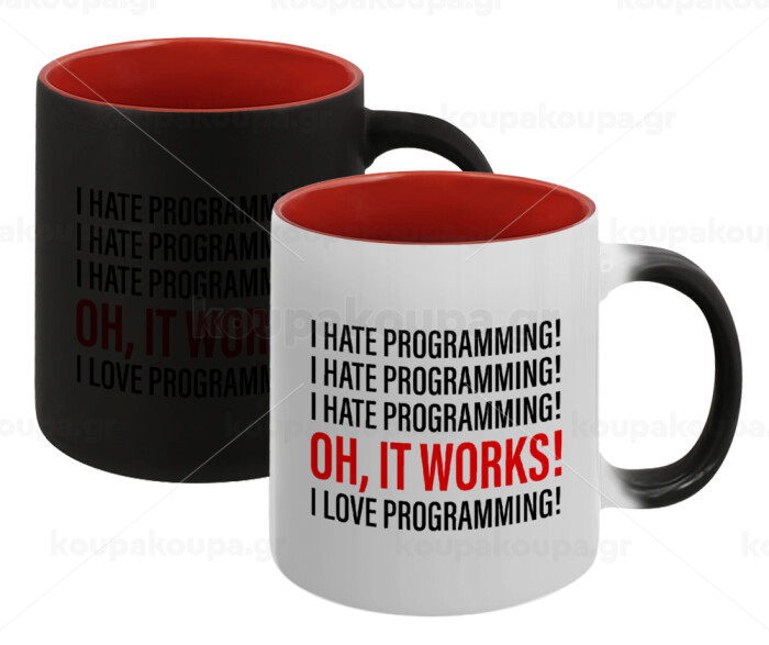 I hate programming!!!, Κούπα Μαγική εσωτερικό κόκκινο, κεραμική, 330ml που αλλάζει χρώμα με το ζεστό ρόφημα