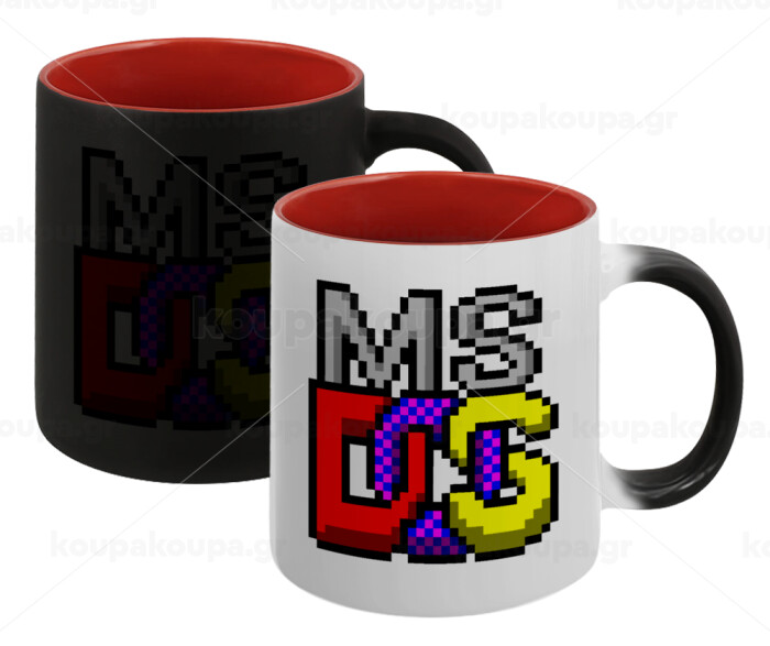 MsDos, Κούπα Μαγική εσωτερικό κόκκινο, κεραμική, 330ml που αλλάζει χρώμα με το ζεστό ρόφημα