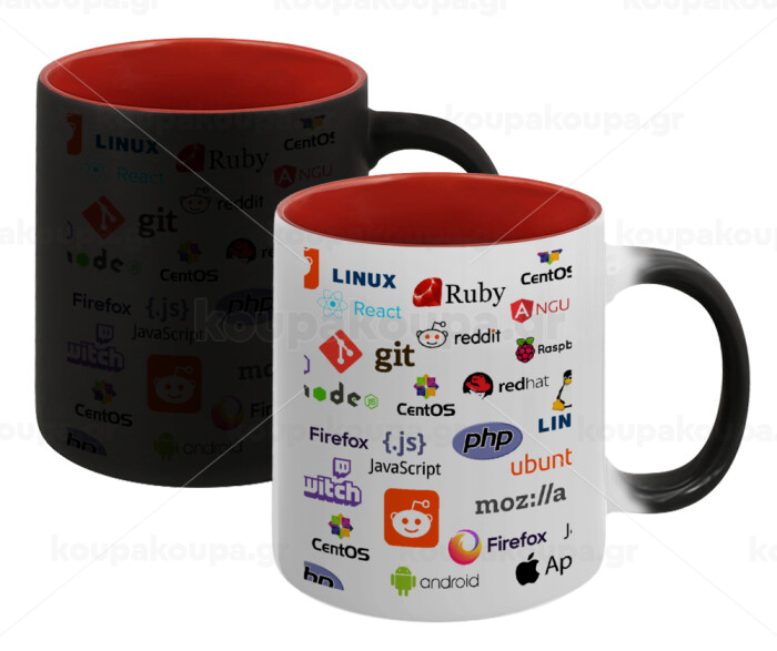 Tech logos, Κούπα Μαγική εσωτερικό κόκκινο, κεραμική, 330ml που αλλάζει χρώμα με το ζεστό ρόφημα