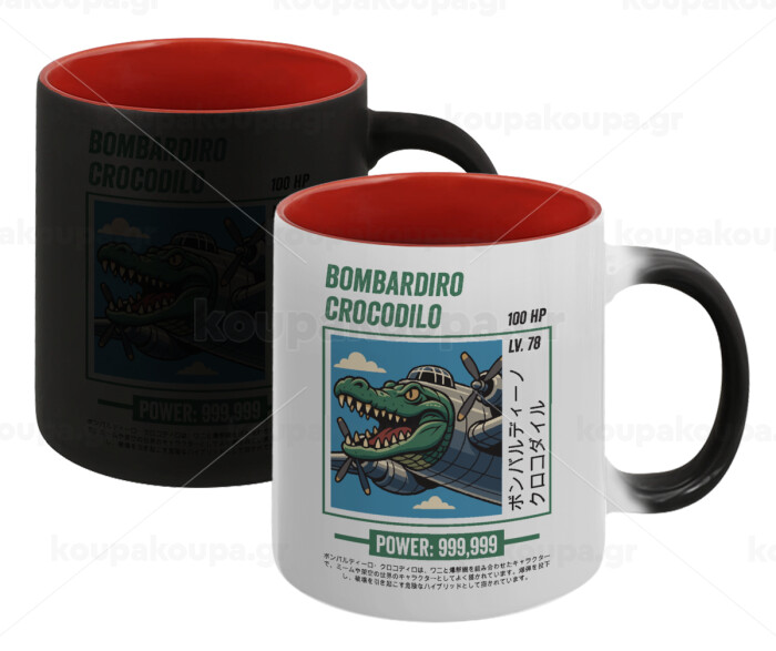 Bombardiro Crocodilo, Κούπα Μαγική εσωτερικό κόκκινο, κεραμική, 330ml που αλλάζει χρώμα με το ζεστό ρόφημα