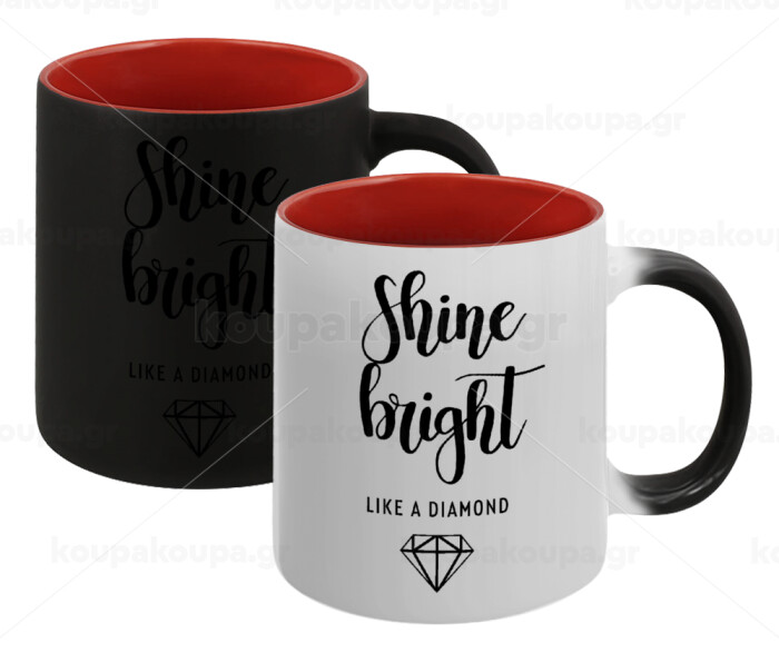 Bright, Shine like a Diamond, Κούπα Μαγική εσωτερικό κόκκινο, κεραμική, 330ml που αλλάζει χρώμα με το ζεστό ρόφημα