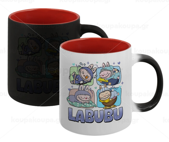 Labubu, Κούπα Μαγική εσωτερικό κόκκινο, κεραμική, 330ml που αλλάζει χρώμα με το ζεστό ρόφημα