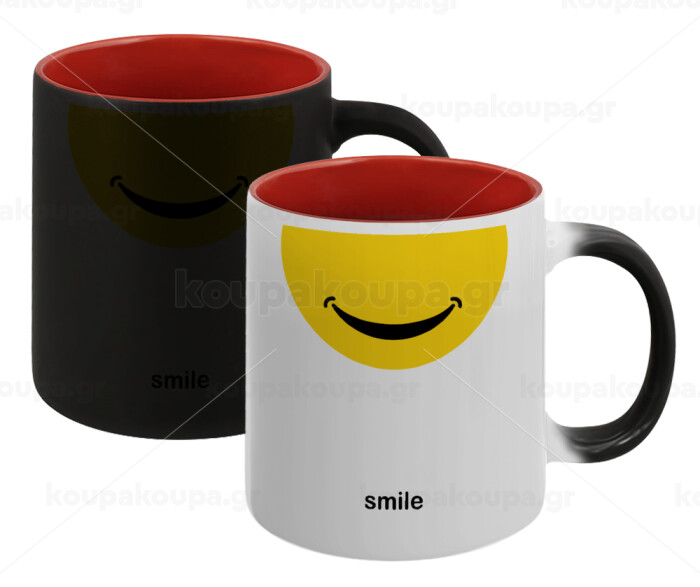 Smile Mug, Κούπα Μαγική εσωτερικό κόκκινο, κεραμική, 330ml που αλλάζει χρώμα με το ζεστό ρόφημα