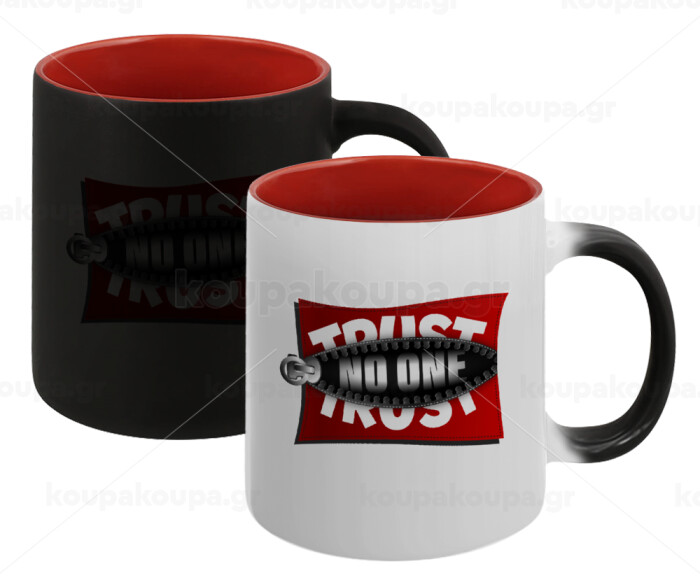 Trust no one... (zipper), Κούπα Μαγική εσωτερικό κόκκινο, κεραμική, 330ml που αλλάζει χρώμα με το ζεστό ρόφημα