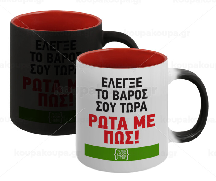 Έλεγξε το βάρος σου ρώτα με πως! {your logo here}, Κούπα Μαγική εσωτερικό κόκκινο, κεραμική, 330ml που αλλάζει χρώμα με το ζεστό ρόφημα
