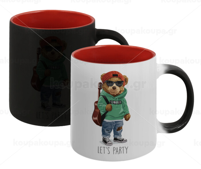 Let's Party Bear, Κούπα Μαγική εσωτερικό κόκκινο, κεραμική, 330ml που αλλάζει χρώμα με το ζεστό ρόφημα