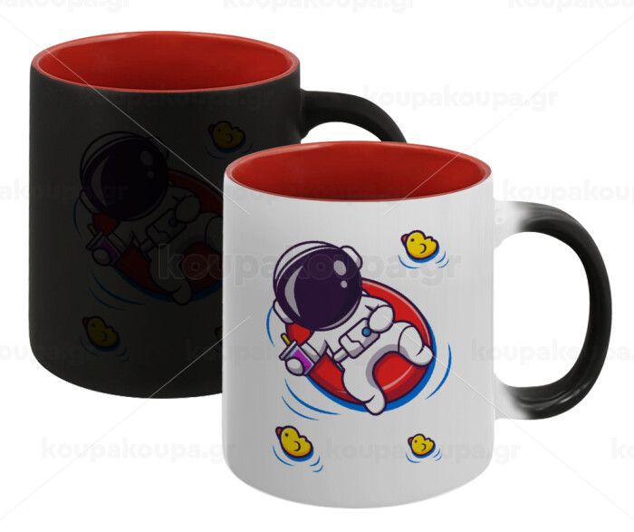 Μικρός αστροναύτης θάλασσα, Κούπα Μαγική εσωτερικό κόκκινο, κεραμική, 330ml που αλλάζει χρώμα με το ζεστό ρόφημα