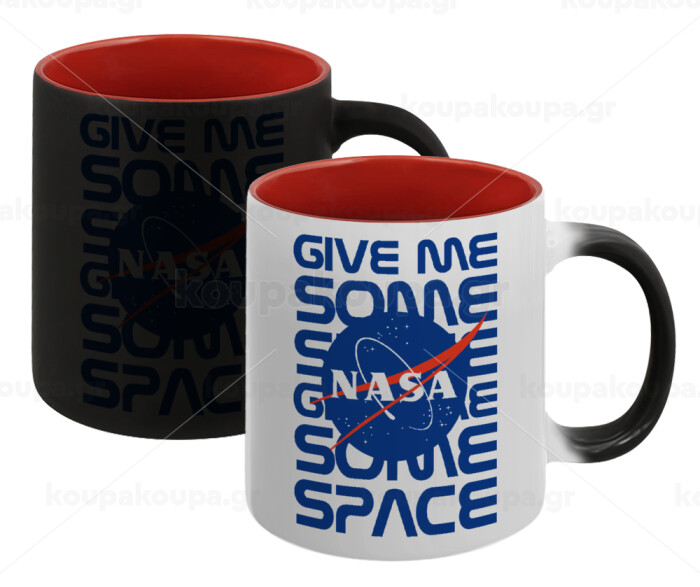 NASA give me some space, Κούπα Μαγική εσωτερικό κόκκινο, κεραμική, 330ml που αλλάζει χρώμα με το ζεστό ρόφημα