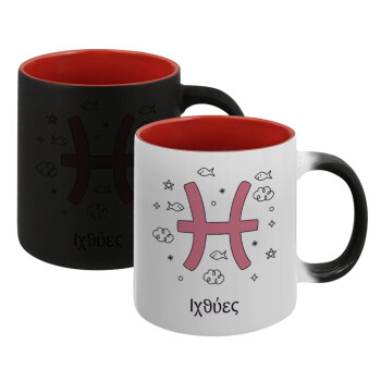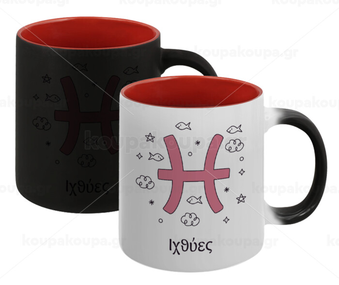 Ζώδια Ιχθύες, Κούπα Μαγική εσωτερικό κόκκινο, κεραμική, 330ml που αλλάζει χρώμα με το ζεστό ρόφημα