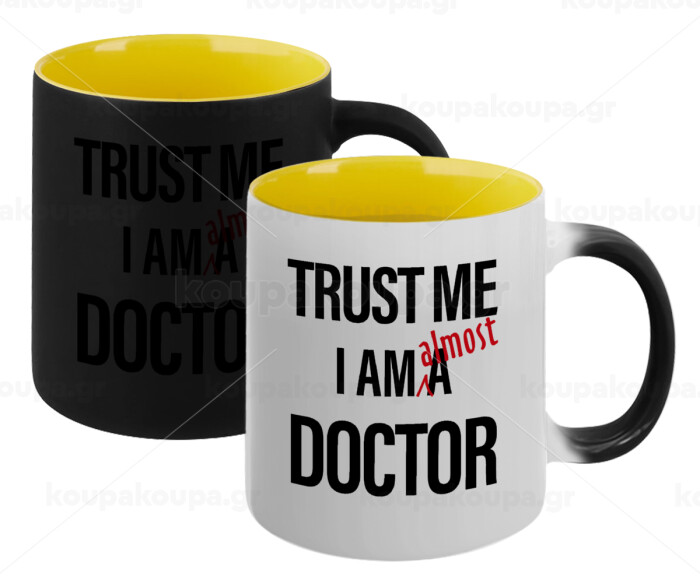Trust me, i am (almost) Doctor, Κούπα Μαγική εσωτερικό κίτρινη, κεραμική 330ml που αλλάζει χρώμα με το ζεστό ρόφημα
