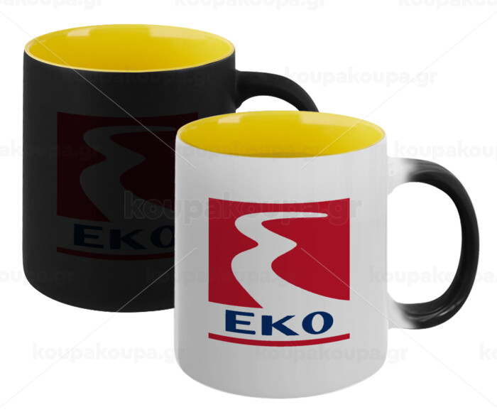 Πρατήριο καυσίμων EKO, Κούπα Μαγική εσωτερικό κίτρινη, κεραμική 330ml που αλλάζει χρώμα με το ζεστό ρόφημα