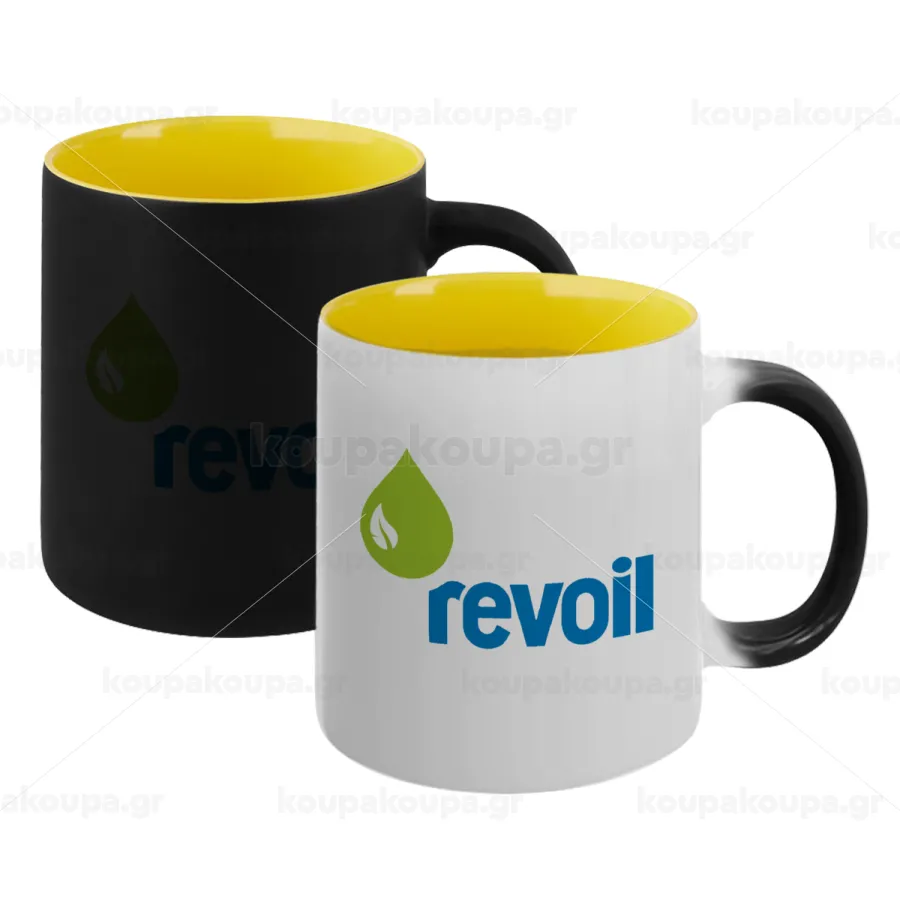 Πρατήριο καυσίμων REVOIL, Κούπα Μαγική εσωτερικό κίτρινη, κεραμική 330ml που αλλάζει χρώμα με το ζεστό ρόφημα