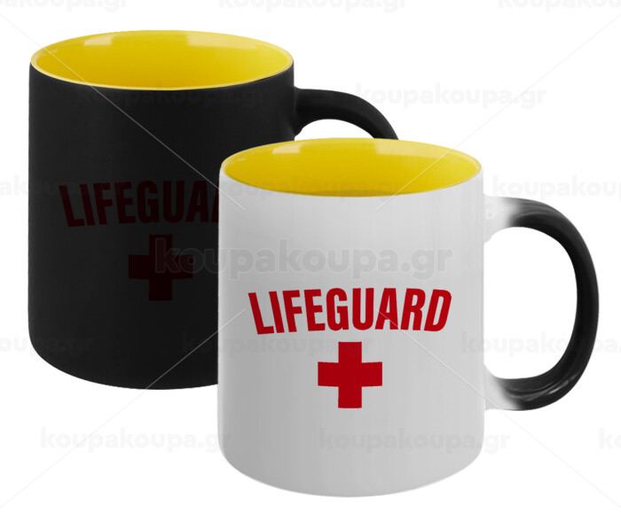 Lifeguard, Κούπα Μαγική εσωτερικό κίτρινη, κεραμική 330ml που αλλάζει χρώμα με το ζεστό ρόφημα