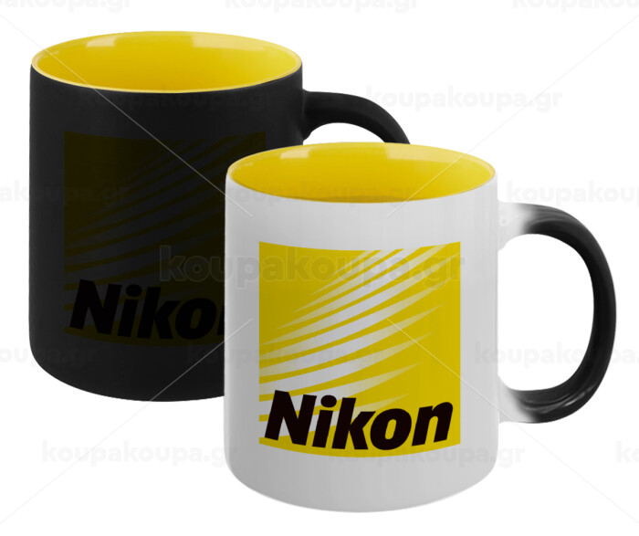 Nikon, Κούπα Μαγική εσωτερικό κίτρινη, κεραμική 330ml που αλλάζει χρώμα με το ζεστό ρόφημα