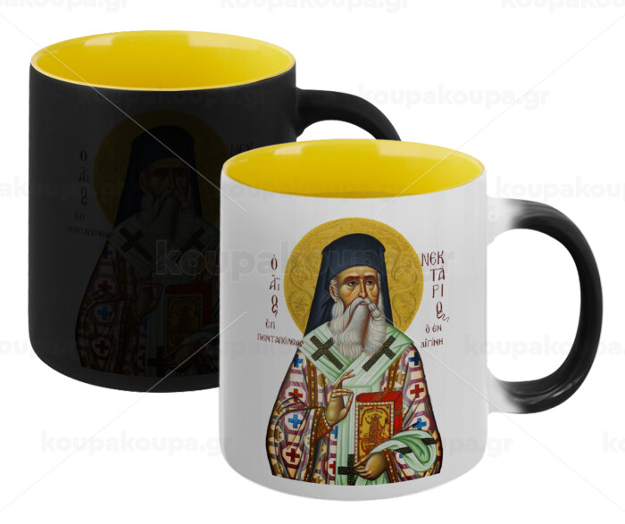 Saint Nektarios, Κούπα Μαγική εσωτερικό κίτρινη, κεραμική 330ml που αλλάζει χρώμα με το ζεστό ρόφημα