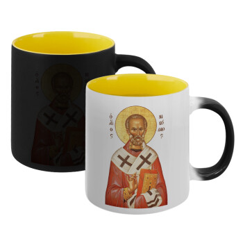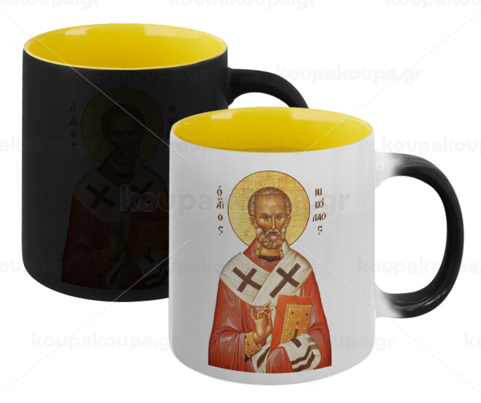 Saint Nicholas orthodox , Κούπα Μαγική εσωτερικό κίτρινη, κεραμική 330ml που αλλάζει χρώμα με το ζεστό ρόφημα