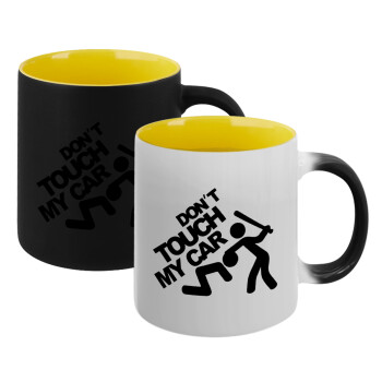 Don't touch my car, Κούπα Μαγική εσωτερικό κίτρινη, κεραμική 330ml που αλλάζει χρώμα με το ζεστό ρόφημα