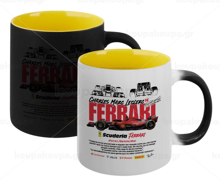 F1 Ferrari, Κούπα Μαγική εσωτερικό κίτρινη, κεραμική 330ml που αλλάζει χρώμα με το ζεστό ρόφημα