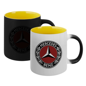 Mercedes vintage, Κούπα Μαγική εσωτερικό κίτρινη, κεραμική 330ml που αλλάζει χρώμα με το ζεστό ρόφημα