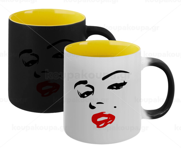 Marilyn Monroe, Κούπα Μαγική εσωτερικό κίτρινη, κεραμική 330ml που αλλάζει χρώμα με το ζεστό ρόφημα