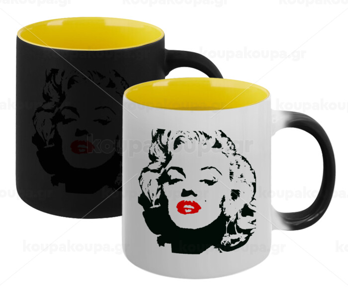 Merilin, Κούπα Μαγική εσωτερικό κίτρινη, κεραμική 330ml που αλλάζει χρώμα με το ζεστό ρόφημα