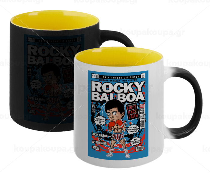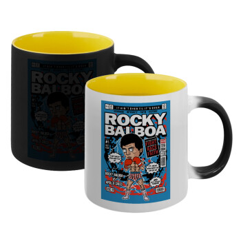 Rocky Balboa, Κούπα Μαγική εσωτερικό κίτρινη, κεραμική 330ml που αλλάζει χρώμα με το ζεστό ρόφημα