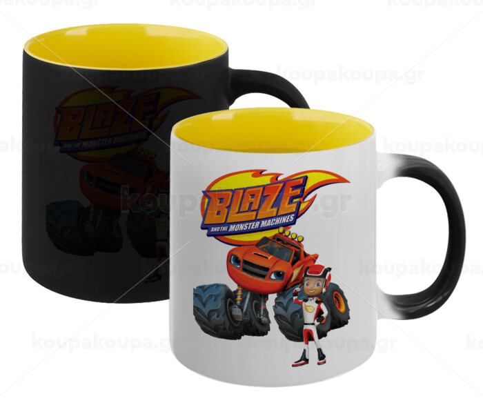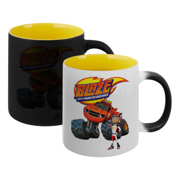 Ο Μπλέιζ και οι Φίλοι του, Κούπα Μαγική εσωτερικό κίτρινη, κεραμική 330ml που αλλάζει χρώμα με το ζεστό ρόφημα