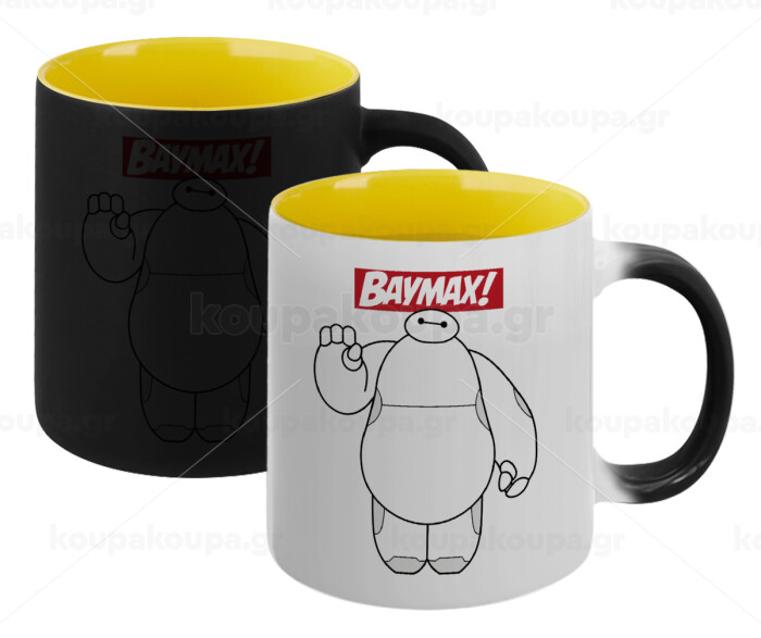 Baymax hi, Κούπα Μαγική εσωτερικό κίτρινη, κεραμική 330ml που αλλάζει χρώμα με το ζεστό ρόφημα